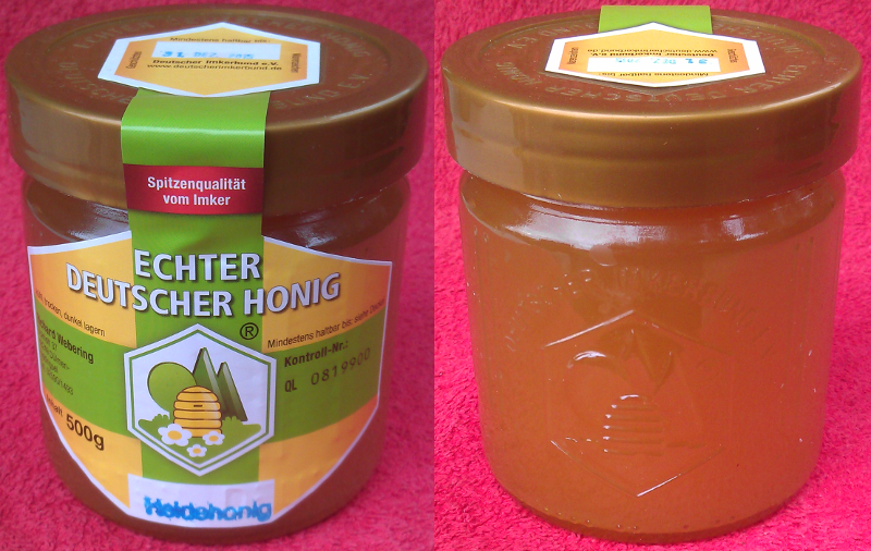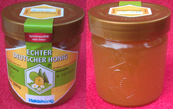aus Heidegebieten - hat ein kräftiges Aroma. Typisch für den Heidehonig ist seine geleeartige Konsistenz, die von einem hohen Gehalt an Eiweißverbindungen herrührt.